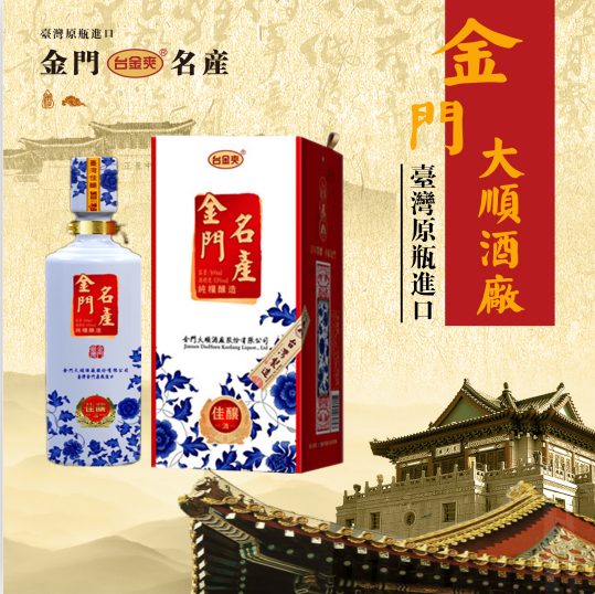 金門大順酒廠,座落于金門北緯24.5度,地處海隅,濱大陸,得天獨厚的地理,使它擁有絕佳的水質、空氣、氣候及原料的四大天然釀酒條件。金門大順酒廠的高粱酒釀造是利用金門特產『旱地高粱』、引用當地水質甘甜的泉水、金門潔凈的空氣與氣候條件,并承襲傳統古法之釀酒技術,加上獨家的釀酒專業技術經驗【三離二鍋一翻】的發酵釀酒工藝,經掐頭去尾后入庫,去蕪存菁。而造就出金門大順酒廠的高粱酒特色「清澈透明、質地純凈、芳香濃郁」之一系列高粱酒。金門大順酒廠制酒承襲著金門得天獨厚的地理環境,加上三代流傳之古法醇釀技技術,結合經驗與現代化生產,釀出風味獨特,香、醇、甘、冽的【臺島】【臺金爽】【牛樟芝高粱酒】【龍騰鳳舞】【紅雙十】【陳高吶】【臺灣小酒】等多樣系列產品。真實原味、清香散發,甘冽醇厚的絕佳風味。